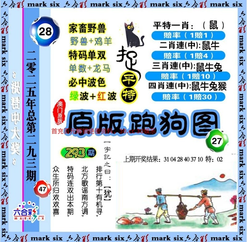293期九肖 | 龙猴蛇马兔鸡虎鼠羊 | 开:羊47 |